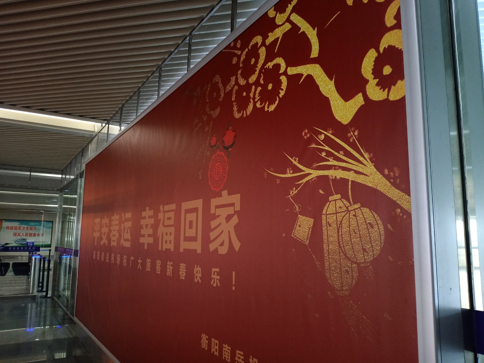 紅邊白字“賀新春”、各種字體的“?!弊?、紅底黃字大幅噴繪“平安春運幸福回家”……...